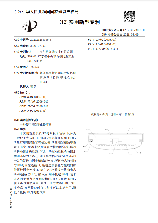 一種便于安裝的LED燈具
