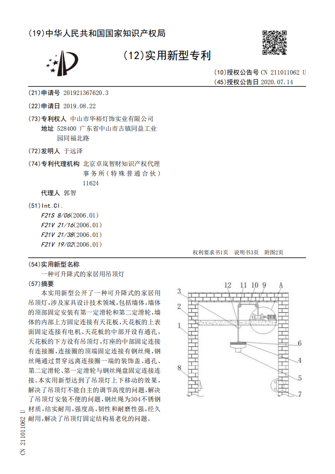 一種可升降式的家居用吊頂燈